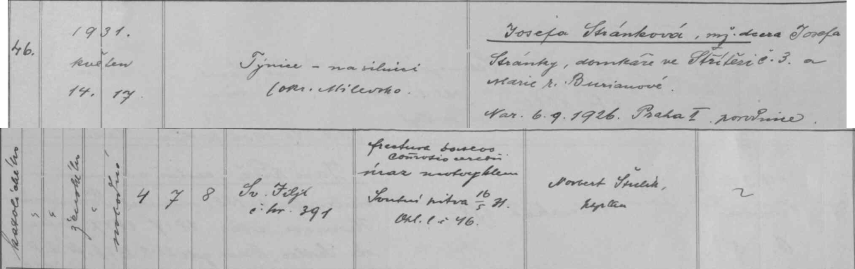 | Úmrtí | 14. květen 1931 | Týnice | úraz motocyklem na silnici | 1a |