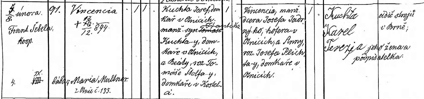 | Matka | Vincencie Kuchta ( Jadrný ) | 19. srpen 1866 | ||