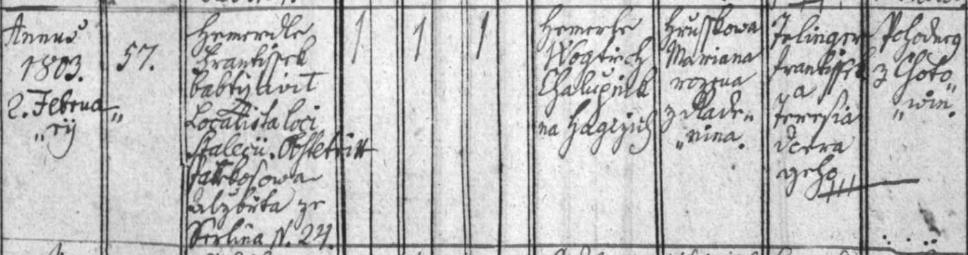 | Baptistické křtiny | 1803-02-02 | Hájky, č. 57 | 1a | |