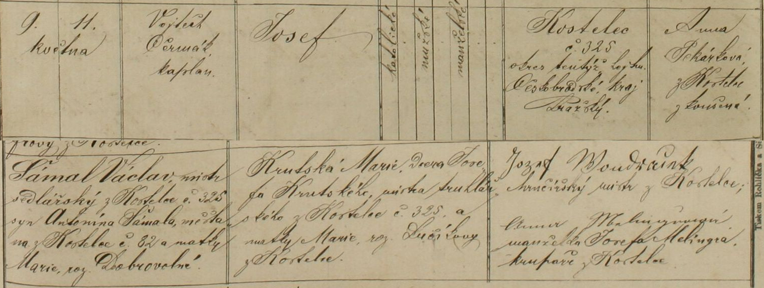 | Narození | 1875-05-09 | Kostelec nad Černými Lesy, č. 325 | 1a | |